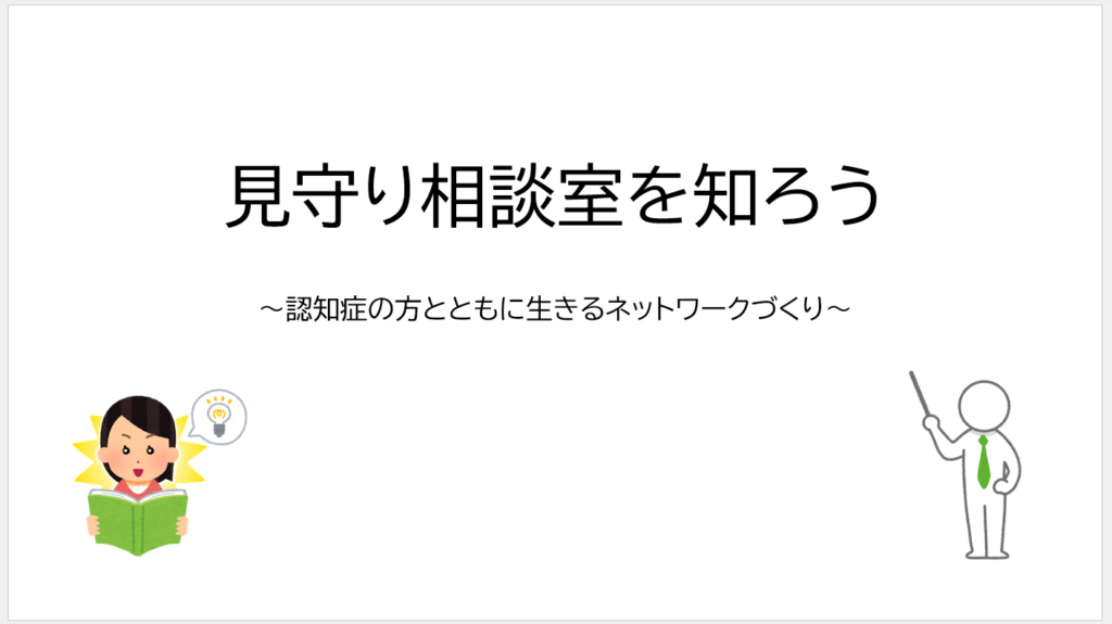 研修のテーマは、西成区社会福祉協議会に設置されている見守り相談室の方へ講師として、『見守り相談室を知ろう~ 認知症の方とともに生きるネットワークづくり ~』をテーマにどのような事業をしているのかの説明と、架空事例を基にグループワークを行いました。